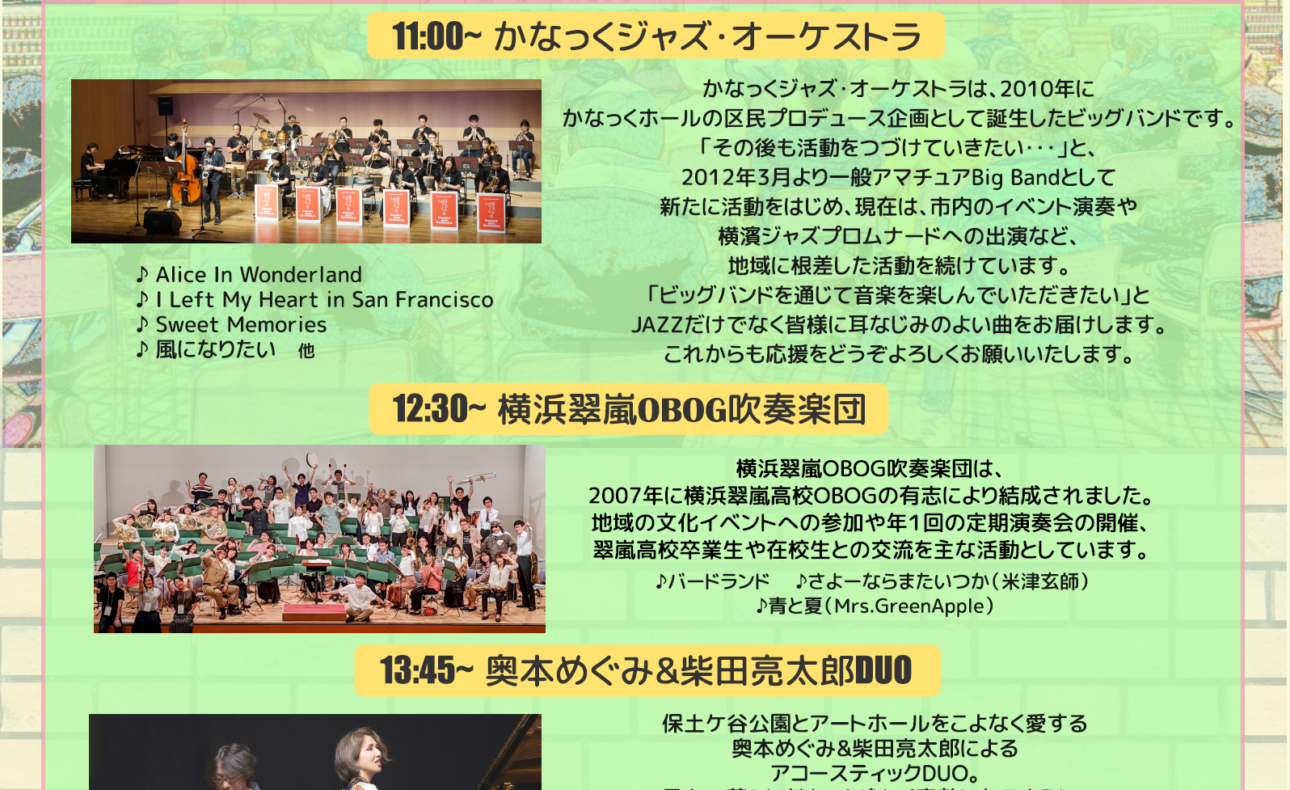 ※この日は保土ケ谷公園の様々な場所でイベントが開催される「みんなのパークフェス」と共催になります。