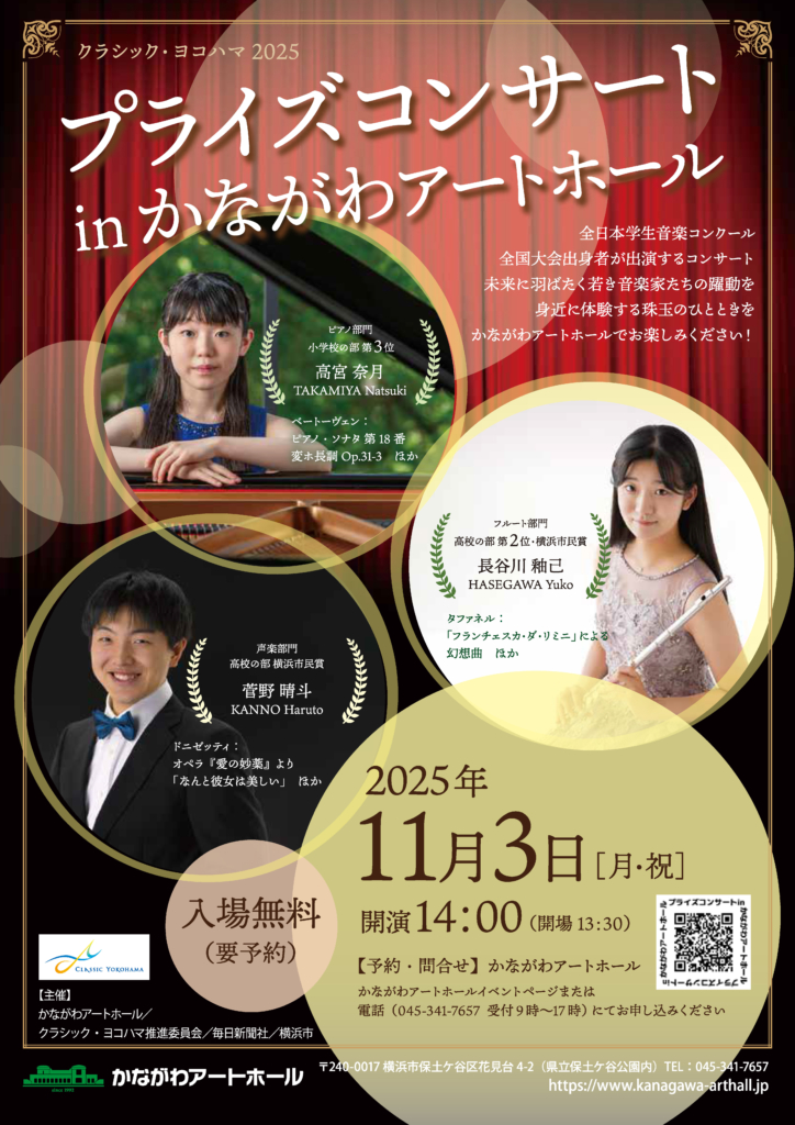 主催:かながわアートホール、クラシック・ヨコハマ推進委員会、毎日新聞社、横浜市
